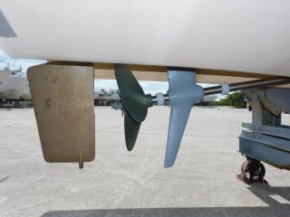 キール前部に特注フィンが設置されており、スパンカー使用時の風立ちが非常に良くなっております。