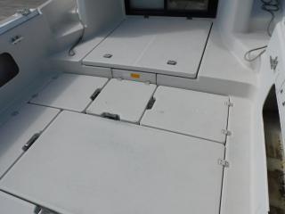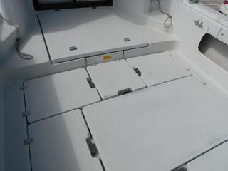 床面には大型のイケスとストレージがあり、又、両サイドのブルワークにも長尺物入れ装備しております。