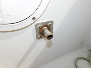 バウバースの右舷後方に個室の電動マリントイレが設置されておりますので、ファミリーユースに欠かせないものです。