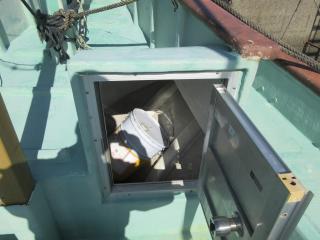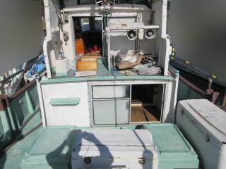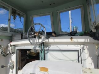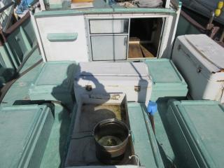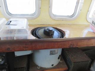 ◆上段の入口には引き戸があります、その中に機器類があります、操船は外で行います。