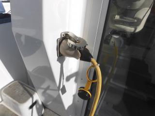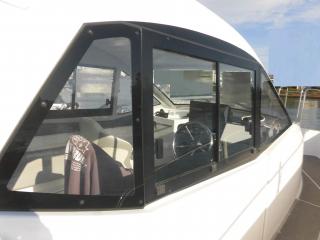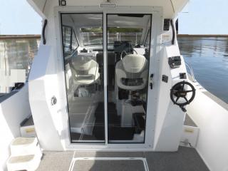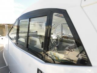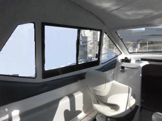キャビンドアは右舷側がスライドするタイプでキャビン内の窓も両サイド共、スライドタイプで断熱フィルムが張ってありエアコンの効きも良好です。