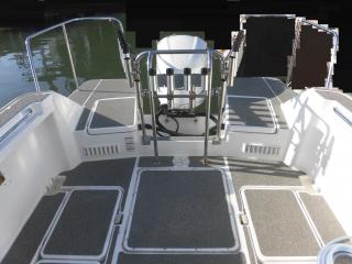 全体的にほぼ新艇に近い状態の為、大変に綺麗な状態が保たれておりデッキ全面にはプールサイドで使用されるタキストロンシートが張ってあるので見た目も大変に綺麗です。