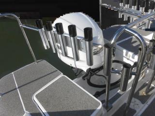 アフトデッキはフラットで広いスペースが確保されておりオプションのスタンレールが両舷に有るのでトラブル無く4人が釣りを楽しめそうです。