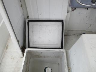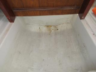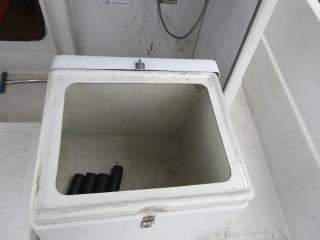 ◆2枚敷板があります、板を外せばば前方ににマリントイレが有ります、後方は物入です。