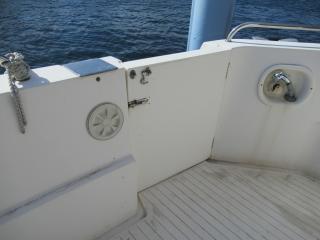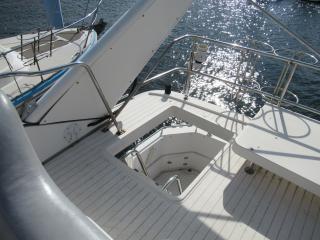 アフトデッキにはデッキシャワー、海水ウォッシュダウン、デッキライト、陸電設備、スイミングステップ、スイムラダーなどの装備があります。