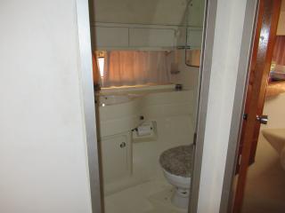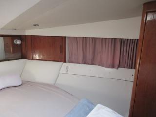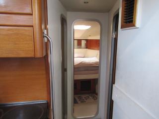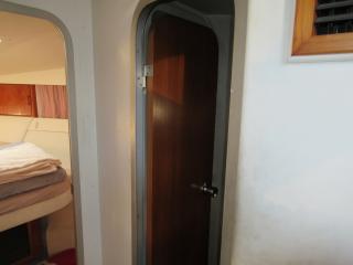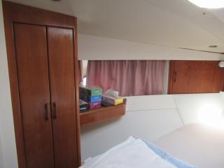 ギャレーを過ぎて前方に進むとまず右舷側にゲストルームがあります。また、左舷側にはゲスト用のシャワー付きのトイレの装備があります。そのまま前方に進みますとオーナーズルームになります。オーナーズルームにもシャワー付きのトイレの装備があります。
