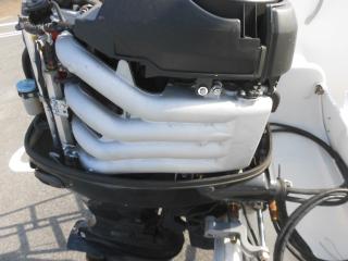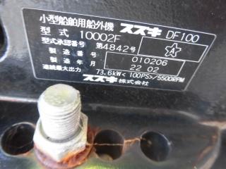 エンジンはスズキ製DF100(4スト100馬力)搭載でMAXスピードは約28ノット程です。使用時間は僅か200時間程と少なく大変に燃費のいいエンジンです。