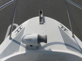 オフセットキャビンで片舷(右舷側)ウォークアラウンド艇なのでバウとスターンの移動がスムーズで安全に行えます。