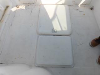 キャビン内は意外に広く大人二人が横になって寛げるスペースがございます。左舷側には採光窓が有り前方にはバウハッチも有るので涼風を取り込む事もできます。