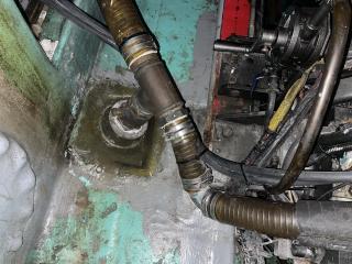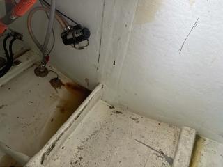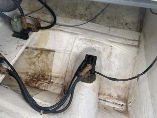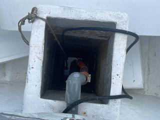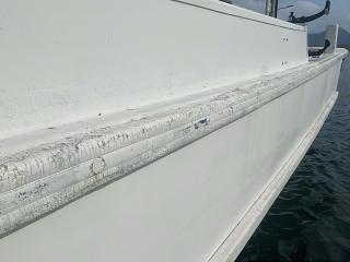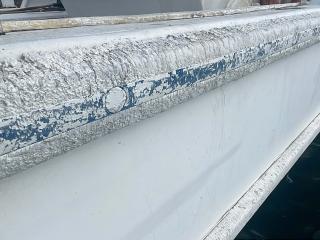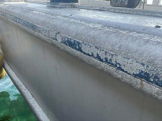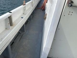 左舷サイドデッキの一部を切って発電機10Kwを搭載されましたので、その部分を補修しています。