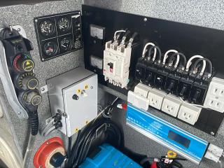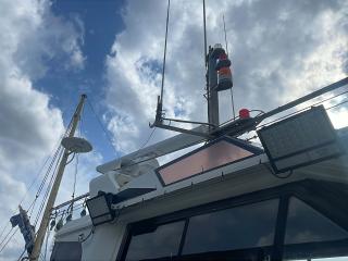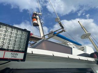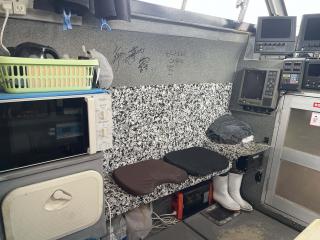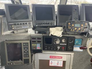 オートパイロット、ソナー、魚探、潮流計、微速、舵リモコン、無線機×2基。