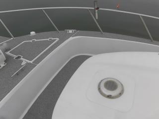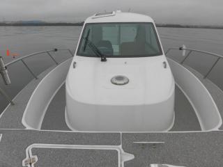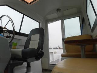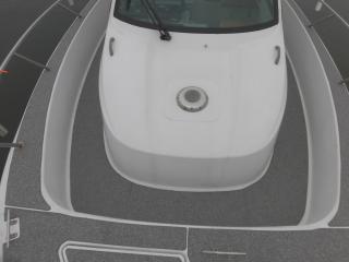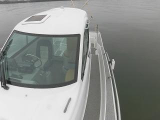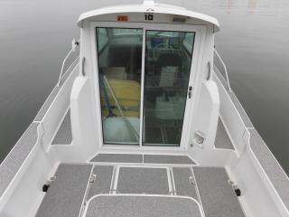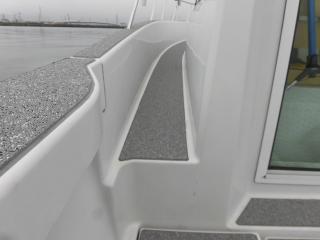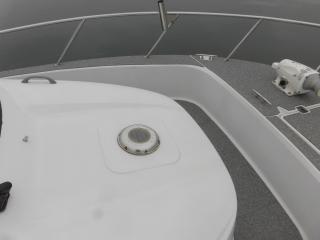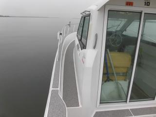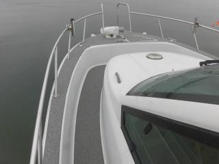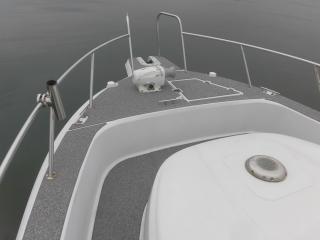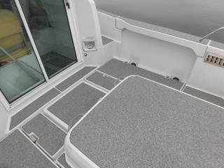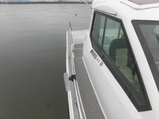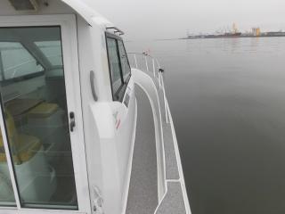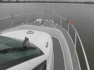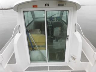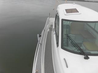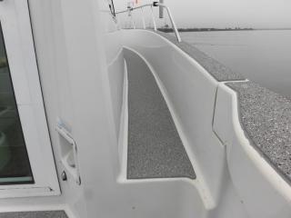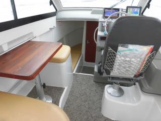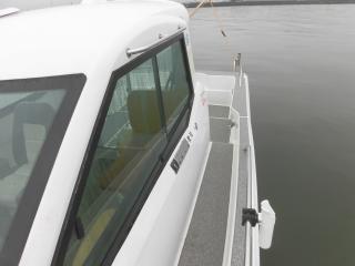 この艇はセミウォークアラウンドタイプのフィッシングボートでキャビン内が広い割にはサイド通路幅が広く手摺り高さも十分に確保せれており移動時は安心・安全です。