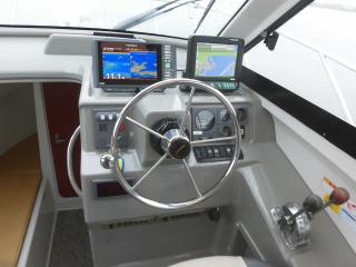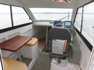 フロントガラスは大きくコンソールパネルも低いため海面の確認や航海計器類の視認性と操作性が良好です。