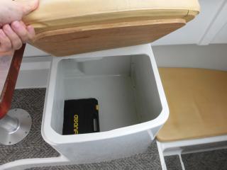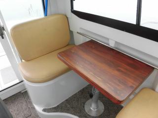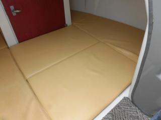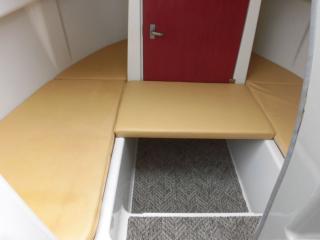 バウバースはクッションのレイアウトにより大人2、3人が横になり仮眠をとれるスペースが有ります。バースクッションも綺麗な状態が保たれておりシート下は収納スペースとなっております。