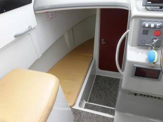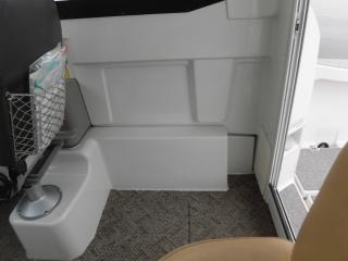 25ftクラスのフィッシングボートではなかなか見ないレイアウトでキャビン内・バウバースは広く、明るいキャビン内は贅沢を感じさせてもらえる快適空間で個室タイプのマリントイレ完備なので子供や女性が乗船しても安心です。