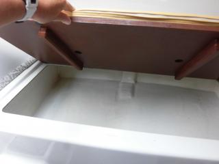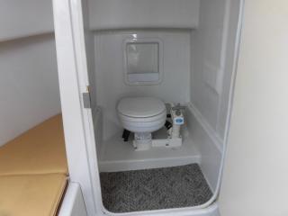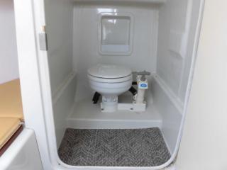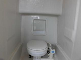 バウルーム正面には個室タイプの手動マリントイレが有り綺麗な状態が保たれており女性や子供が同船しても安心です。