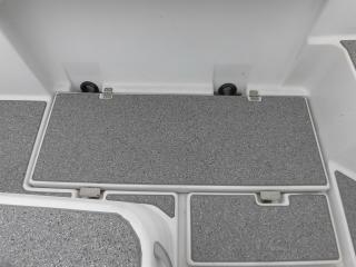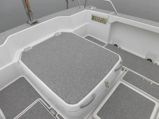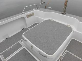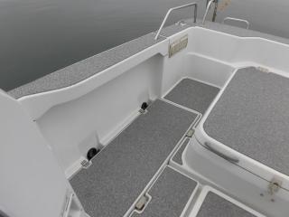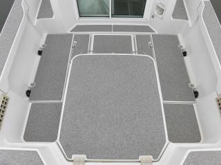アフトデッキ中央にはエンジンハッチがあり両サイドに腰掛けて4人程が釣りができハッチ下部はエンジンスペースです。