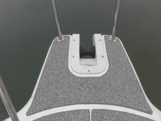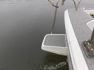 船尾両舷にはトランサムステップがあり右舷側にはスイミングラダーがあるので海面アプローチも楽ちんです。