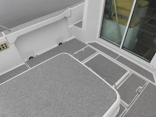 キャビン内の両サイドは前後共にスライドガラスの為、滑走時はもちろん停船時でも快適な風を取込む事ができます。