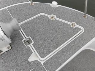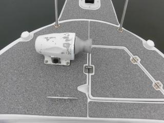 見た目で目立つのはデッキ全面とエンジンハッチとブルワーク全面に施されたタキストロンシートで各所細部まで目地が打たれております。