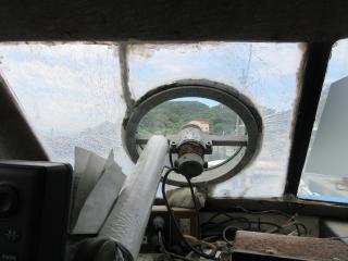 ◆操舵室は二段です、一段目の前方が休息できるスペースになります。