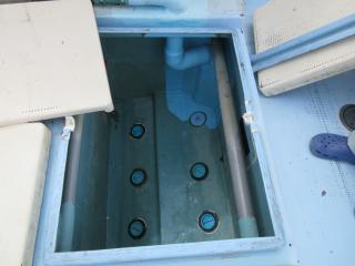 ◆フロントデッキのイケスは広くて深いです、循環式のイケスも有ります。