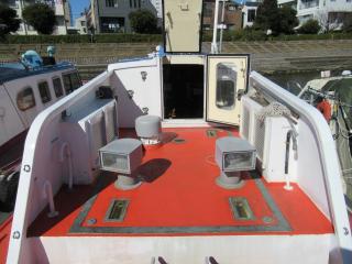 今回ご紹介する艇は1989年式(平成元年)日本飛行機建造の39FT(11.98メートル/7.3トン)交通船兼作業船です。
