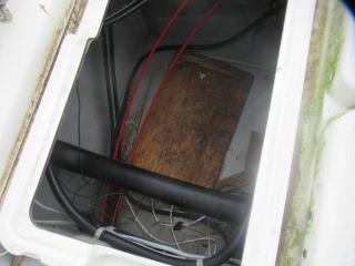 ※アフトデッキ(左舷側)ストレージハッチを開くとメイン電源とバッテリーが有ります。