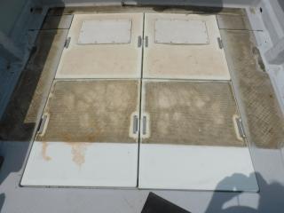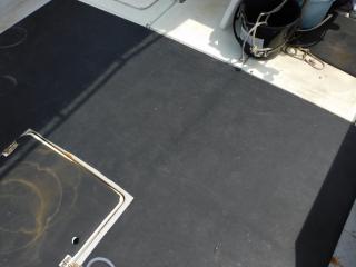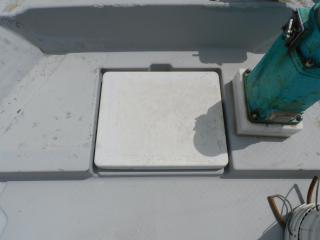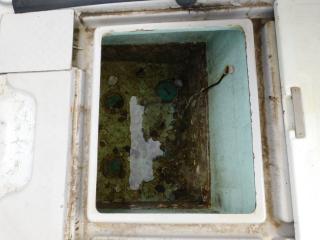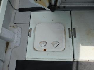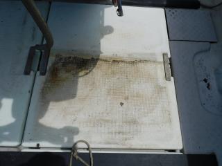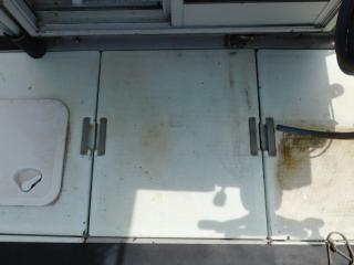 床面にはイケスが1槽、ストレージが2個装備されており、エンジンハッチ、舵室とドライブ確認口もあります。