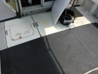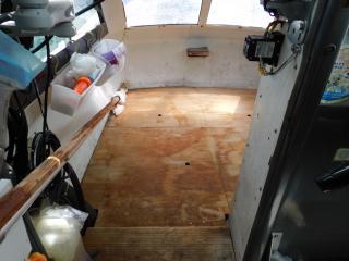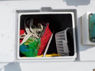 キャビン前部にバウバースがあり、明るく大人2~3名が座って休憩できる広さがありますが、現状では床クッションが無く釣り竿等の収納庫として使用しております。