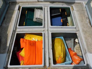 床面にはイケスが4槽装備しており、現状はストレージとして使用しております。