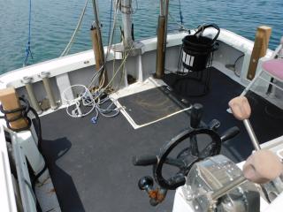 キャビン入口右手前にセカンドステーションがあり、デッキからの操船ができますので、フィッシング時や離接岸時には有難いです。