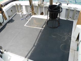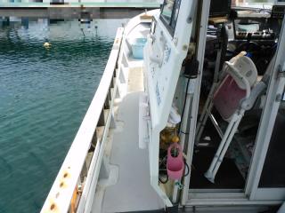 サイドデッキも幅が広く、ブルワークは低いですがプラスチックボードが取り付けておりますので、安心してデッキの往来や釣りができます。