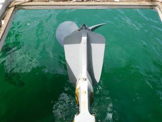 トランサムにはスパンカーが装備されており、デッキウォッシャー、電動リール端子、24V電源などフッシングに必要な装備も付いております。