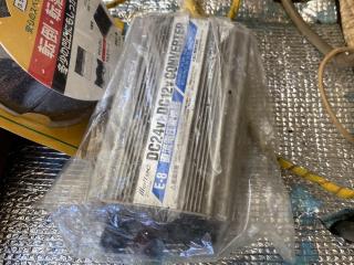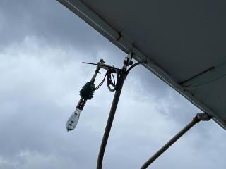 発電機は7.5kw。集魚灯は3灯焚けます。デコデコ24から12ボルトに変換します。