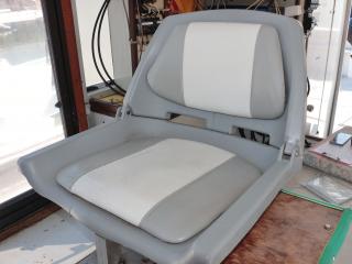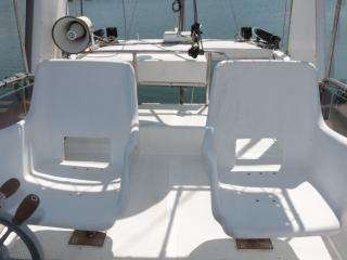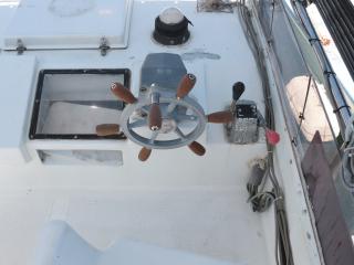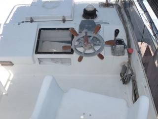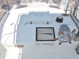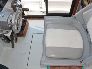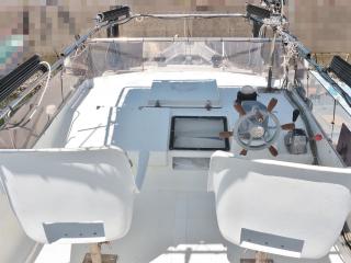 ◆この艇の特徴はフライングブリッジ(FB)付きという点です。FBのシートは2脚です。FBにはオーニングも付いています。