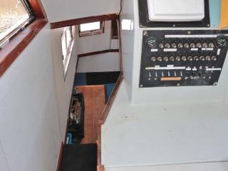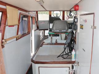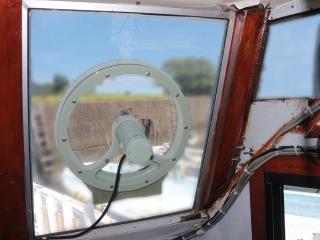 ◆ブリッジには両舷とアフトデッキからアクセス可能です。操船部にはレーダー、GPS魚探、魚探、オートパイロットなどが備わっています。また、1W漁業無線も装備しています。