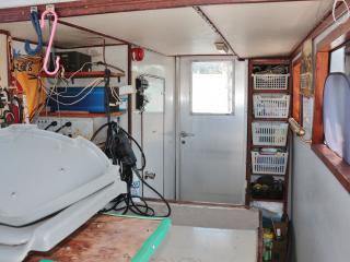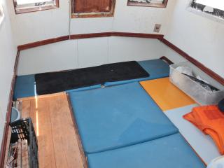 ◆操船部の左舷側から階下のキャビンスペースにアクセスできます。キャビンスペースは大人が数人横になって寝られる程度の広さがあります。