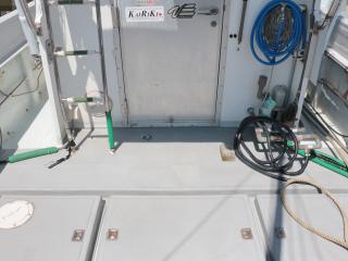 ◆デッキは全体的に大きくブアついているような箇所は無いように見受けられました。また塗装が激しく剥げてFRPがむき出しになったような箇所も無いように見受けられました。