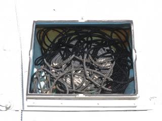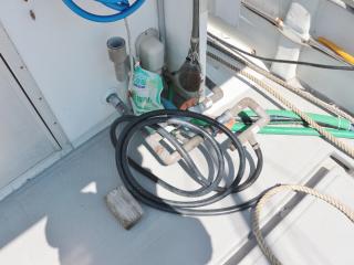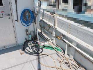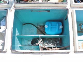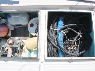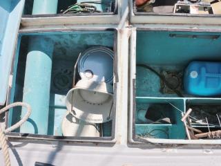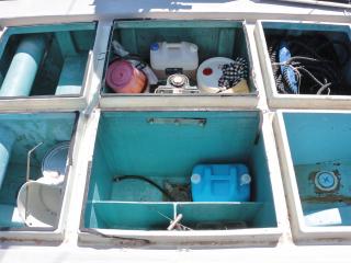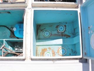 ◆ブリッジ前には強制循環式のイケスが装備されています。(使うにはホースの取り付けが必要です。)またトモのブリッジ後方左舷側には普通のイケスも装備されています。