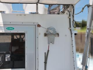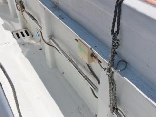 ◆トモの入口右舷側には清水が出る蛇口があります。また、この上に微速レバーもありますので3連リモコンを引っ張ってくればここでも操船可能です。