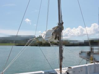 ◆スパンカーも装備しています。帆は劣化防止の為、現在取り外しています。