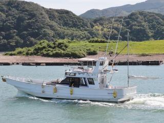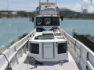 ◆実長約14m、実幅約2.9mの船体にフライングブリッジやその他釣りに特化した艤装がなされた個体です。