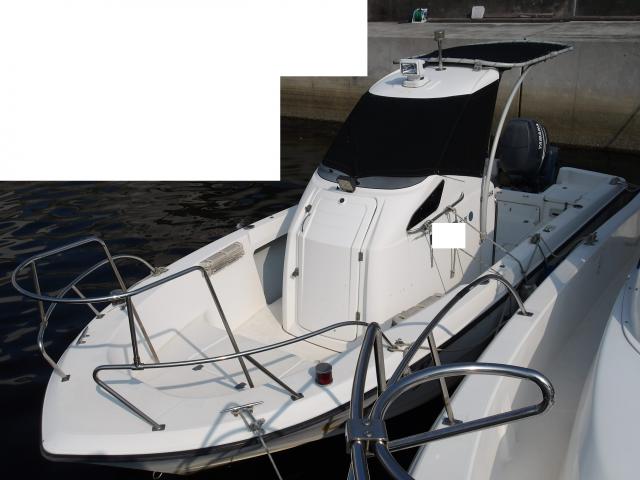 装備等はオーニング、サーチライト、バウレール、マリントイレ、GPS魚探、ロッドホルダー、トランサムステップ、ラダー、操舵席、リーディングチェアーなど