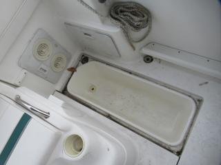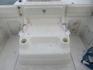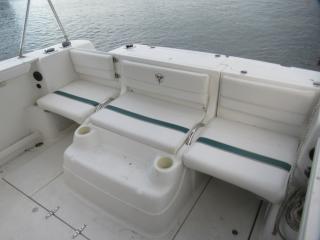 アフトデッキの広さはクルージングでは5人程着座できるシートが有り、着座シートを外すと2~3人での釣りができるスペースは確保されております。