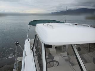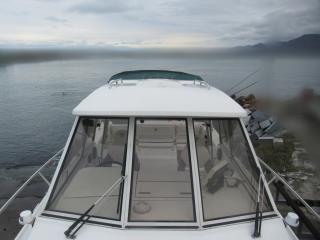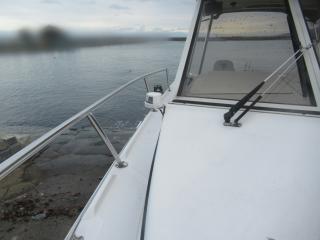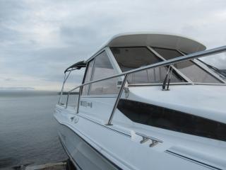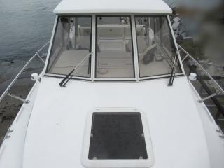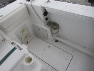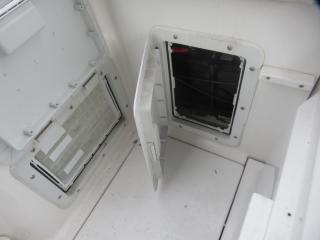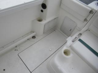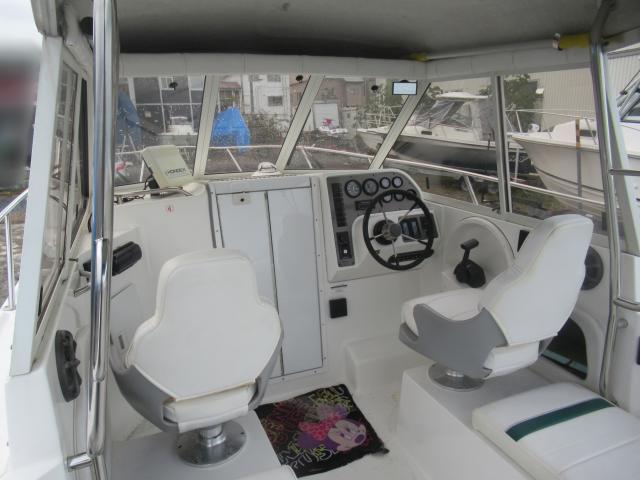 コクピット(操船部)は計器類が見やすく配置され、フロント・サイドウインドウは開放的で操船時の視界も取りやすく、GPS魚探2台が有り(GPSと魚群探知機)で操船時、フィッシング時も見やすい配置となります・