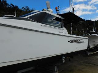 又、ダブルチャインにより心地よい走行性と高い静止安定性を両立しており、更に幅広くブルワークの深いウォークアラウンド、フラットなアフトデッキを持っておりますので、フィッシングに専念できるボートです。