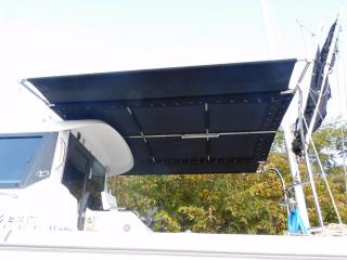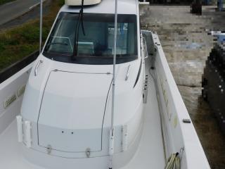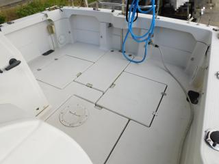 キャビン前部にはボンネットハッチがあり、バウバースから釣り竿などの出し入れができ重宝します。