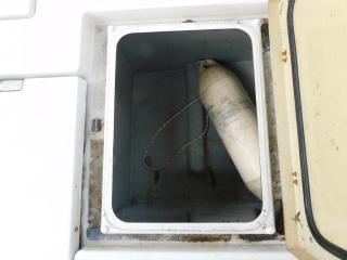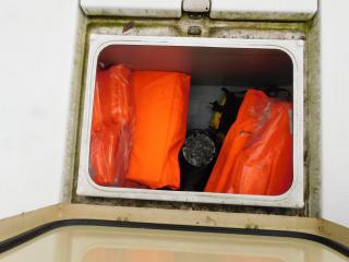 キャビン後方右舷側には大型のスターンロッカーを備えており、内部は個室トイレルーム(ベンチレーター付)です。