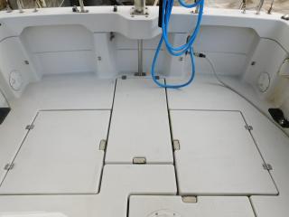 バウバースは長尺物入れとして利用できる便利なもので、ボンネットハッチによりバウデッキからも簡単に物の出し入れができます。